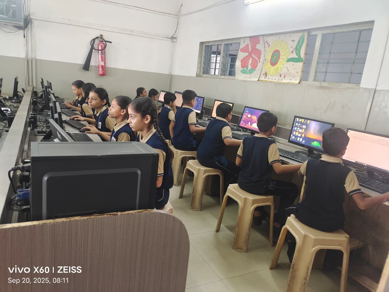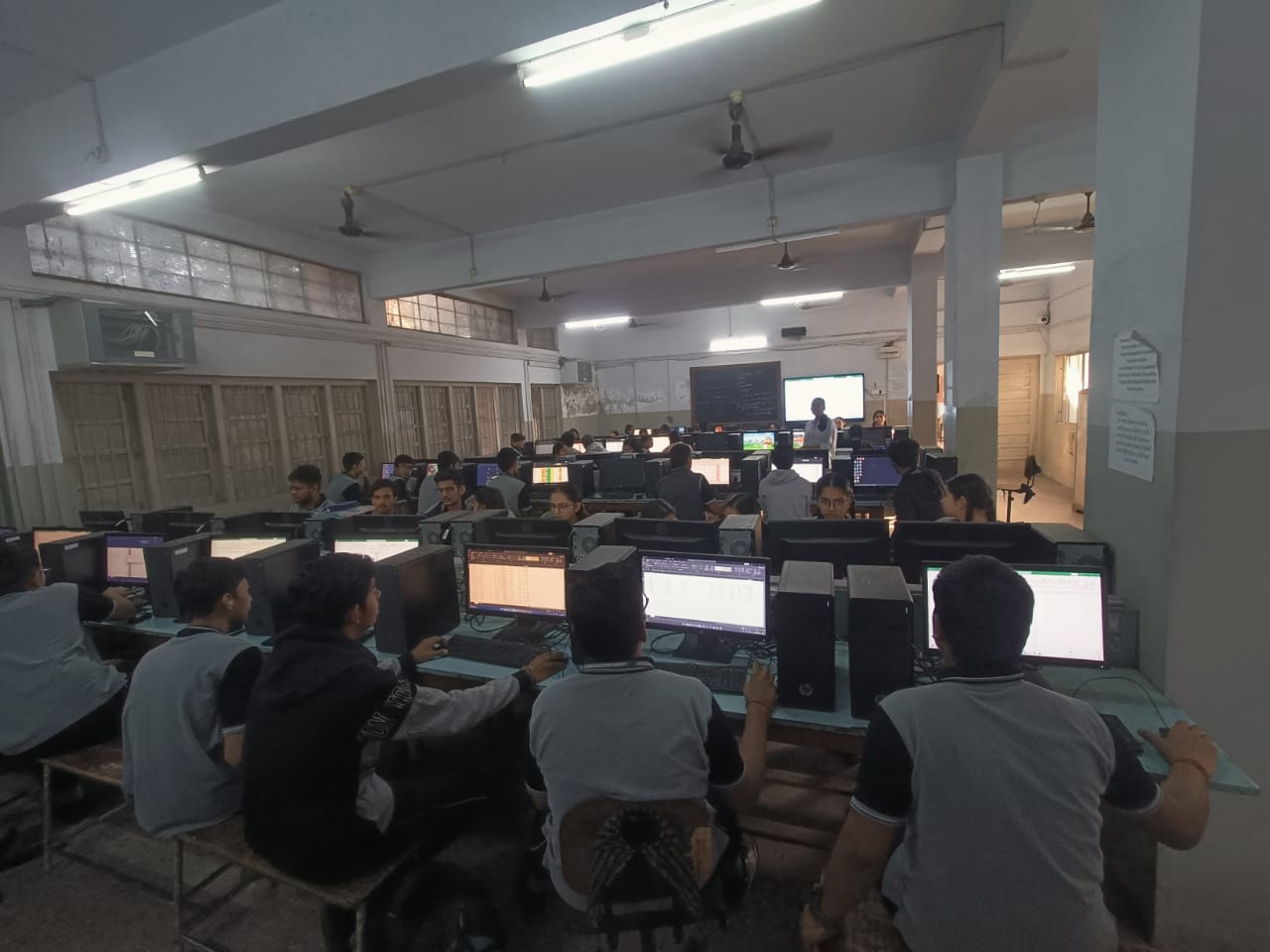 Our C.C. Shah School Computer Lab is well-equipped with 60 modern computers that give students hands-on learning experiences in technology. The lab provides a spacious and comfortable environment where students can explore computer skills, programming, and digital learning. It is also fitted with a smart board, which makes teaching more interactive and engaging, allowing teachers to explain concepts with the help of visuals and multimedia. The lab is designed to encourage practical learning and to prepare students for the digital world.
